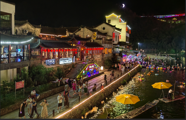 酒足飯飽后,團(tuán)隊前往旅程第六站:上河村。上河村正在上映“不夜上河”· 夢幻水燈市集活動,匯聚于水面上的每一盞水燈,都像是星星落入凡間,承載了無數(shù)的心愿和期待!市集上,各式各樣的文創(chuàng)產(chǎn)品琳瑯滿目,每一件都蘊(yùn)含著匠人的心血。大家紛紛被這浪漫的景象所陶醉。