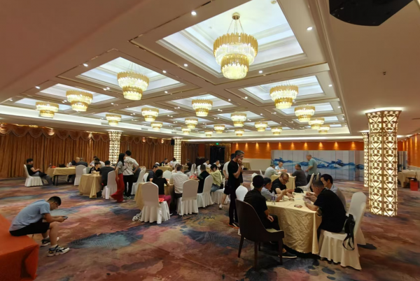 晚上回到入住飯店,公司工會組織開展了一場摜蛋比賽,這次比賽有28位選手共14組參賽,比賽時,選手們?nèi)褙炞,出牌果斷,圍觀的同事們也時而緊張時而歡笑,現(xiàn)場氣氛熱烈非凡。最終第4組、第7組和第14組分別獲得*、亞軍和季軍。